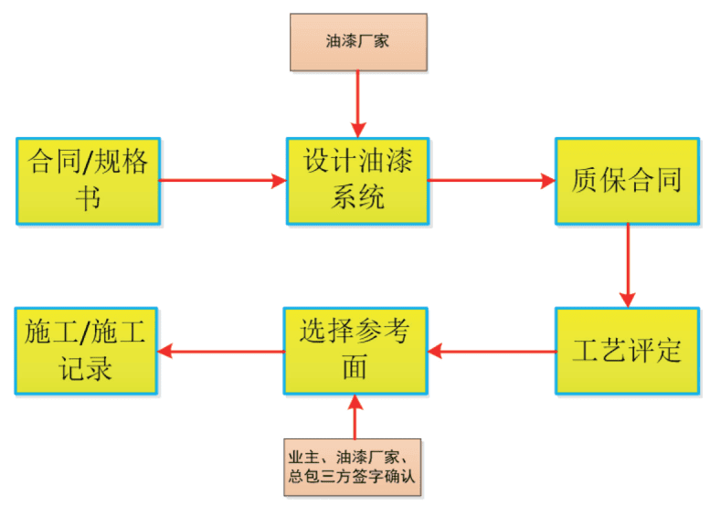 工程项目要求进行涂层质保,总承包单位或者施工单位应根据合同要求对涂层材料入场检测,包括涂料光谱指纹、固体成分含量、云母含量、锌粉含量、细度以及树脂含量等进行测试是否与涂料公司提供母本成分一致;留存好检验报检记录;工艺评定记录;施工过程中交底记录等文件性资料。同时总承包或施工单位应与涂料厂家签订相关的材料质保协议;与施工厂家签订质量保证协议,并且对重点项目进行工程投保以规避合同质保风险。